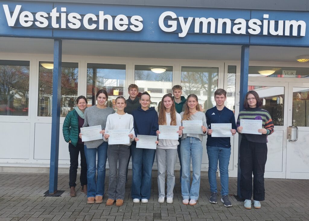 Seit drei Jahren nimmt das Vestisches Gymnasium am Pilotprojekt DELF intégré des Institut Français teil. Dies ermöglicht es, Schülern und Schülerinnen der 10en Klassen, die Französisch lernen, das DELF Zertifikat auf dem Niveau B1 des Europäischen Referenzrahmens für Sprachen zu erwerben.